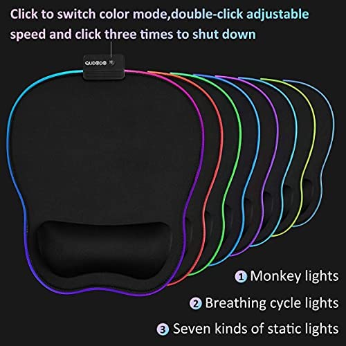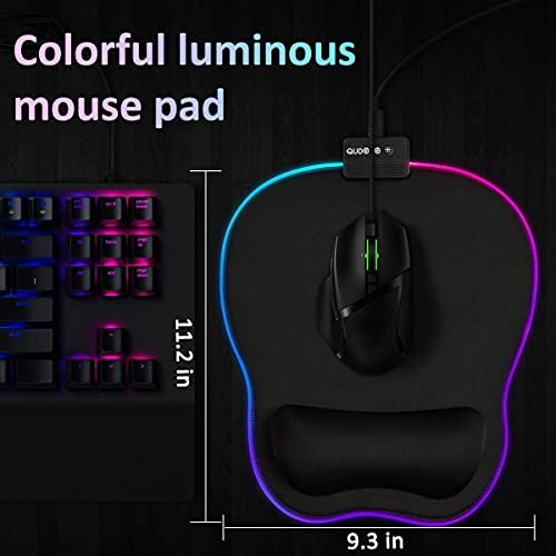 Qudodo RGB Mouse Pad with Wrist Support,Static,Breathing Cycle,Marquee Effect,Memory Foam Wrist Support Pain Relief,Ergonomic Mousepad for Laptop,Mac,Gaming,Office & Home,11.2 x 9.3in(Black)