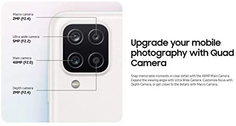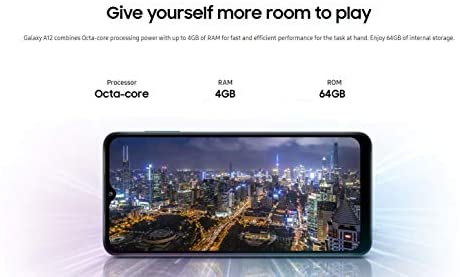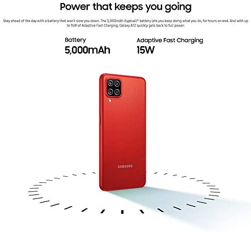More display means more room to play: Expand your view to the 6.5-inch Infinity-V Display of Galaxy A12 and see what you’ve been missing. Thanks to HD+ technology, your everyday content looks sharp, crisp and clear. Upgrade your mobile photography with Quad Camera: Snap memorable moments in clear detail with the 48MP Main Camera. Expand the viewing angle with Ultra Wide Camera. Customize focus with Depth Camera, or get closer to the details with Macro Camera. Power that keeps you going: Stay ahead of the day with a battery that won’t slow you down. The 5,000mAh (typical) battery lets you keep doing what you do, for hours on end. And with up to 15W of Adaptive Fast Charging, Galaxy A12 quickly gets back to full power. Give yourself more room to play: Galaxy A12 combines Octa-core processing power with up to 4GB of RAM for fast and efficient performance for the task at hand. Enjoy 64GB of internal storage.