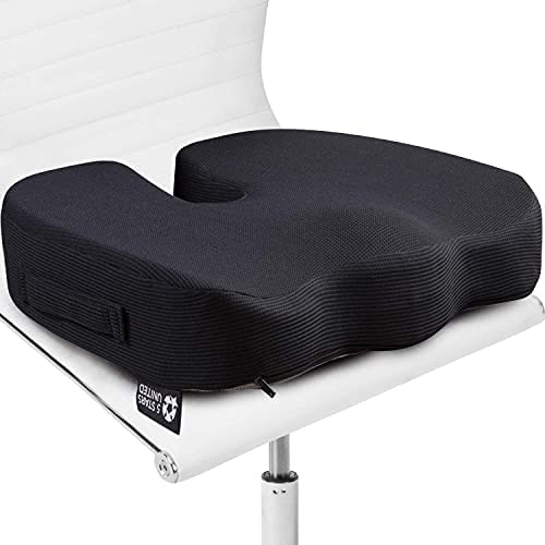 Seat Cushion Pillow for Office Chair – 100% Memory Foam Firm Coccyx Pad – Tailbone, Sciatica, Lower Back Pain Relief – Contoured Posture Corrector for Car, Wheelchair, Computer and Desk Chair