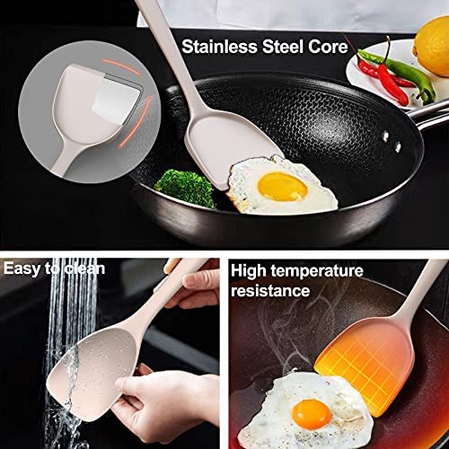 【ONE-PIECE DESIGN & DURABLE STAINLESS STEEL CORE】 Add stainless steel core to each kitchenware to maintain an initial optimal memory state. Never warp,also full of flexibility, durable for many years,not bend or break like other cheap silicone kitchen utensils. One-piece molding without any gaps to capture food, which is different from many kitchenware products,ensures daily use for a long time without being worn down. Large hanging holes help keep your cookware set orderly and organized
