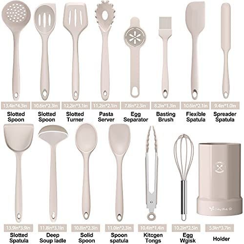 Silicone Kitchen Cooking Utensil Set, Fungun 25 Pcs Kitchen Utensils with Spatula, Spoon, Turner Tongs, Heat Resistant Kitchen Gadgets Tools Set for Nonstick Cookware Khaki (Dishwasher, BPA Free)