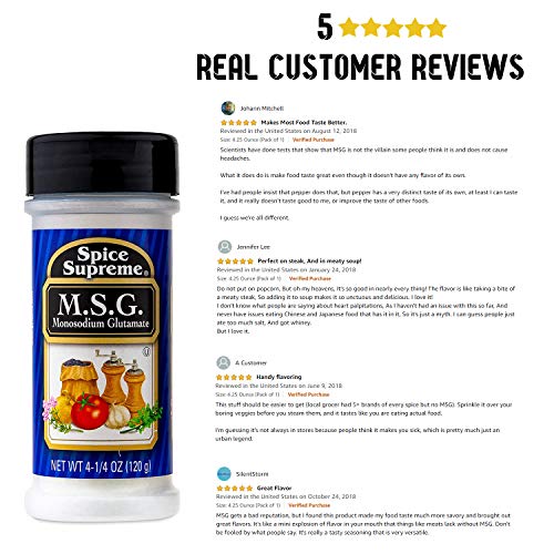 Spice Supreme M.S.G. Monosodium Glutamate, plastic shaker, 4.25-oz.(Pack of 1)
