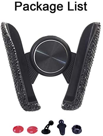 [Mini Design]Rhinestone phone holder is small and compact, and will not block the line of sight during driving. The size is 3.35 inches / 3.35 inches (height * width), suitable for most general smart phones and GPS devices.