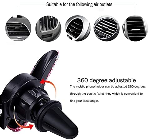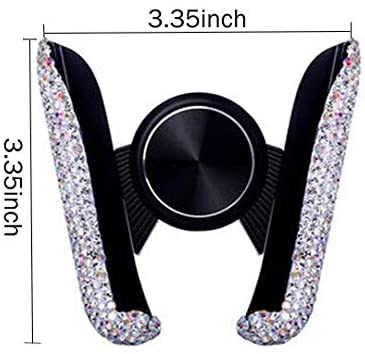 [Mini Design]Rhinestone phone holder is small and compact, and will not block the line of sight during driving. The size is 3.35 inches / 3.35 inches (height * width), suitable for most general smart phones and GPS devices.