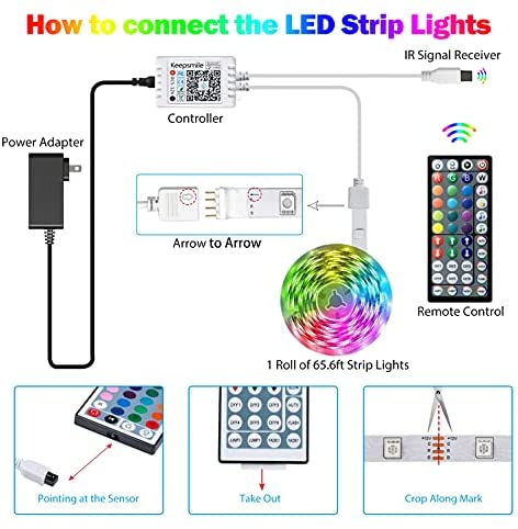 Timing Function: RGB led lights are controlled by 44-key remote control and smart APP, using the timing function, you can pre-set the right time and color to make it automatically on/off, so you can wake up to romantic lights