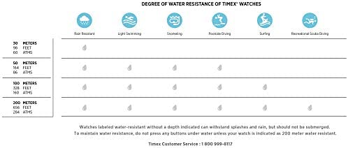 Water resistant to 30m (100ft): in general, withstands splashes or brief immersion in water, but not suitable for swimming or bathing