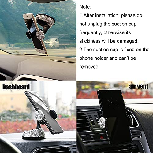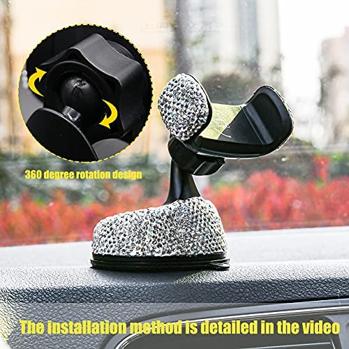 Vallycomfy Bling Phone Holder for Car Come with Air Vent Base & Car Charger Bling Crystal Universal Car Phone Holder Mount for Dashboard,Windshield and Air Vent