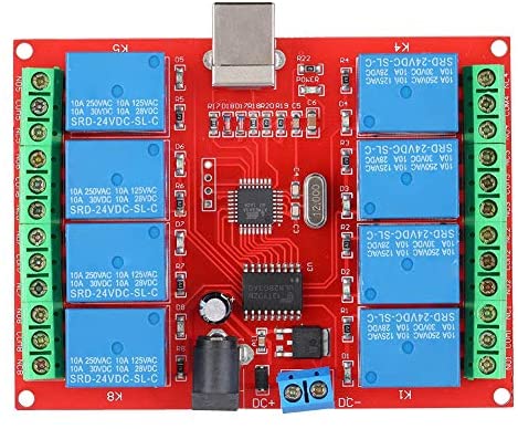 Wendry USB Switch Relay Module, 8-Channel 24V Computer USB Smart Switch Controller PC Relay Module Expansion Board Adopt for HID Technology, no Need for Any Driver, Plug and Play